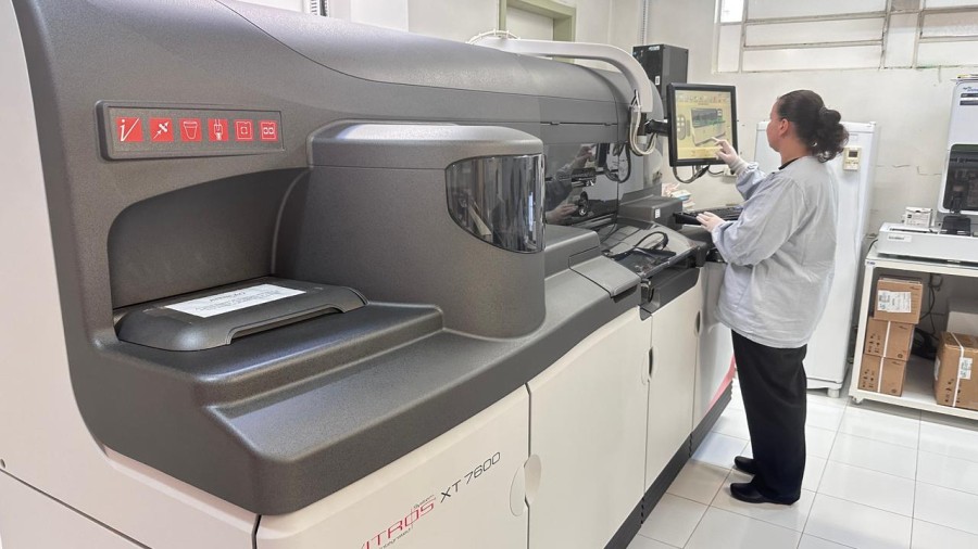 A unidade conta com equipamentos de ponta, como o Vitros 7600, que utiliza a tecnologia de "química seca", um método mais moderno e ecológico, que gera menos resíduo e garante resultados muito mais precisos e rápidos. De acordo com a coordenadora Laboratório, Karin da Lara, o diferencial está na agilidade do processo.